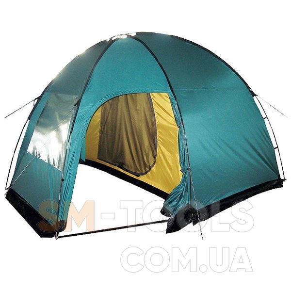 Тент палатки влагостойкий, с вентиляцией и окнами, обработан специальным составом, поглощающим ультрафиолетовые лучи, благодаря чему палатка практически не нагревается под палящим солнцем. Окна тента, в зависимости от погодных условий, можно открывать целиком, частично, или вовсе плотно закрыть в непогоду. Специальная пропитка, задерживающая распространение огня - залог безопасного соседства с костром. По нижней кромке тента пришита «юбка», которая препятствует попаданию воды и сквозняка к спальному отделению. Для надежной влагоустойчивости все швы тента и остальных частей палатки проклеены термоусадочной лентой