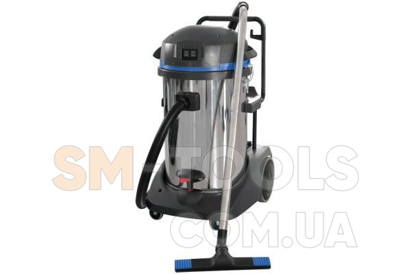 Пылесос способен одинаково легко втягивать как сухой мусор (бетонную пыль, песок, сыпучие смеси, кирпичную крошку, осколки стекла, металлическую стружку и т.д.), так и разного рода жидкости. Объемный бак для мусора на 78 литров выполнен из нержавеющей стали, благодаря чему он устойчив к коррозии и не поддается механическим повреждениям от крупных, тяжелых, острых частиц мусора. Для удобного опустошения бака в нижней его части расположена специальная ручка, которая помогает легко опрокидывать емкость, выбрасывать мусор и сливать воду.