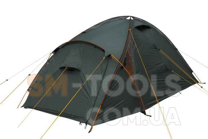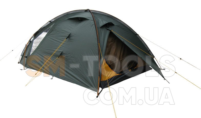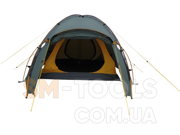 Конструкция палатки позволяет устанавливать тент без спального помещения, а также обеспечивает простую и быструю сборку и разборку всей палатки. Большой и удобный передний тамбур для снаряжения. Два входа дают возможность прямого доступа в спальное помещение и обеспечивают идеальную вентиляцию.