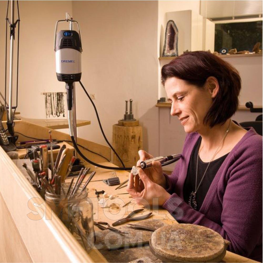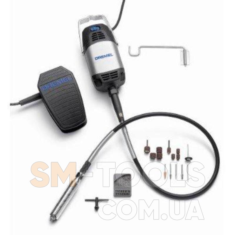 Многофункциональный инструмент Dremel Fortiflex (9100-21) – самый мощный, высококачественный электроинструмент с подвесным электродвигателем (300 Вт), запатентованным высоконадежным гибким валом, прецизионной сменной насадкой и педалью для регулировки скорости (0 – 20 000 об/мин). Это делает его идеальным инструментом для выполнения стационарных работ, например, для работы по дереву, изготовления ювелирных украшений, работ по камню, восстановления автомобилей и любых других задач, требующих сочетания мощности и точности. Dremel Fortiflex: сочетание мощности и точности.
