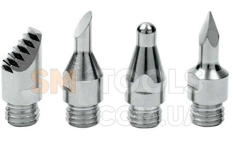 Насадки для выжигания Dremel используются для нанесения на дерево и кожу различных рисунков для выжигания. В набор входит четыре насадки различной формы: овальной, с рисунком, с закругленным или острым наконечником.