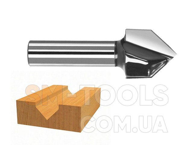 Твердосплавное исполнение. Среди прочего пригодна для имитации резьбы по дереву и гравировки росчерков на поверхности массивной древесины, а также для фрезерования декоративных пазов на поверхности и снятия фасок с кромок массивной древесины при использовании параллельного упора или копировальной втулки.