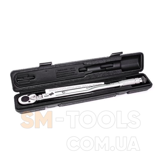 На ключе находится шкала прилагаемых вами усилий 28-210 Нм. Ключ полностью соответствует всем европейским стандартам. Комплектуется пластиковым кейсом для удобного хранения.