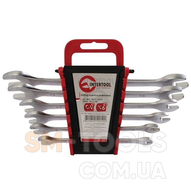 INTERTOOL HT-1001 — это набор из шести качественно выполненных рожковых ключей. Размерная линейка — от 6 до 17 мм. Рожковые ключи являются одними из наиболее популярных, поэтому пригодятся как на автосервисе, так и дома, в гараже или на даче. Ключи поставляются в удобном пластиковом держателе с отверстием для подвешивания. Надежность и долговечность изделий обеспечивает материал изготовления— хром-ванадиумная сталь. Ÿ физические и химические свойства обусловливают высокую устойчивость к механическим нагрузкам, коррозионную стойкость и твердость. Кроме того, эта легированная сталь обладает благоприятным модулем упругости.