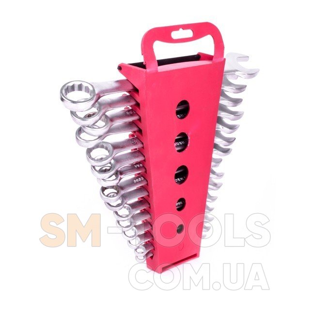 INTERTOOL HT-1204 — это набор из 15 комбинированных ключей, каждый из которых представляет собой сочетание рожкового и накидного гаечного ключа. Размерная линейка набора — от 6 до 22 мм. Обе стороны ключей имеют одинаковый размер головки. Рожковая сторона ключей является самой популярной среди соединений и имеет обширную область применения. Накидная сторона ключей, благодаря кольцевому строению, в момент приложения усилия позволяет распределить нагрузку равномерно. Это снижает риск «слизать» грань угла. В целом, они обширно применяются в автослесарном деле. Ключи изготовлены из хром-ванадиевой стали. Ÿ физические и химические свойства обуславливают высокую устойчивость к механическим нагрузкам, коррозионную стойкость и твердость. Кроме того, эта легированная сталь обладает благоприятным модулем упругости. Удобная форма ключа обеспечивает оптимальные условия для приложения усилия. Ключи поставляются в удобном пластиковом держателе с ручкой и отверстием для подвешивания.