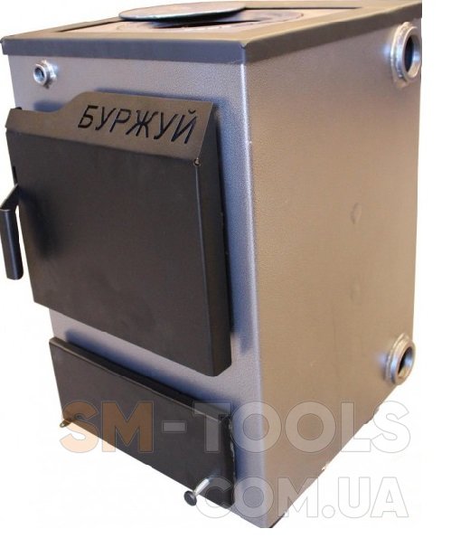 Твердотопливный котел БУРЖУЙ КП-12 предназначается для отопления помещений с площадью до 120 м.кв., в которых предусмотрена отопительная система с естественной или принудительной циркуляцией теплоносителя. Твердотопливные котлы Буржуй, за счет наличия варочной плиты, в отопительный сезон могут использоваться не только для отопления помещений, но и для приготовления или разогрева еды. Под варочной плитой у котлов Буржуй располагаются вваренные в теплообменник котла трубы, которые служат для улучшения теплосъема от сгораемого топлива и повышения КПД котла. Работают котлы Буржуй на угле, дрова, брикетах и т.п., не зависят от электроэнергии, что позволяет эксплуатировать котлы в помещениях, не имеющих подключения к электричеству.