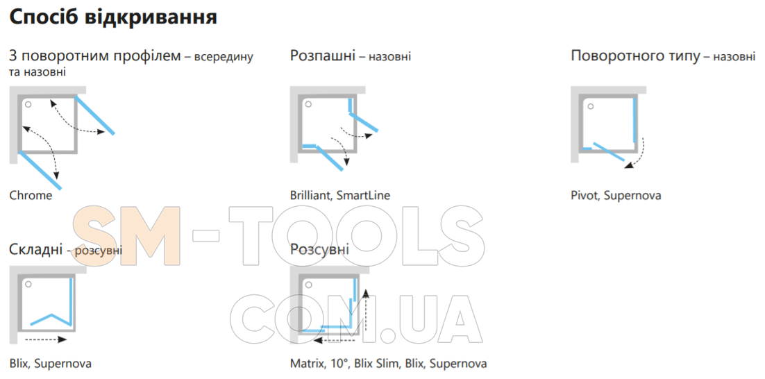 Характеристики варіантів душових кабін Supernova SKKP6:
