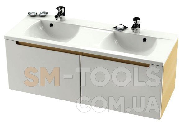 Особенности раковины CLASSIC 1300 - двойная округлая внутренняя форма обеспечивает достаточный комфорт при использовании, практичная поверхность и еще больше места для вещей. Поставляется с отверстием 35 мм под смеситель.
