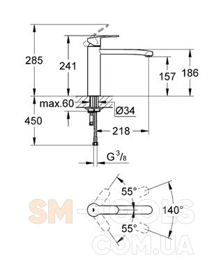 - излив с радиусом поворота 140°