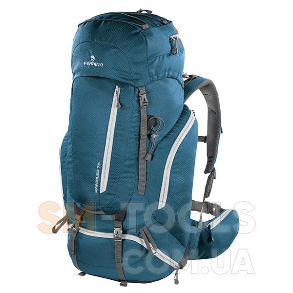 Если необходим надежный, удобный и вместительный треккинговый рюкзак для продолжительного похода - непременно стоит обратить внимание на Ferrino Rambler 75 Blue. Эта модель имеет оптимальный объем для недельного похода в горах, удобную настраиваемую подвесную систему, рюкзак не перегружен различными дизайнерскими и конструктивными решениями, выполнен из легких и прочных материалов, совместим с питьевой системой и имеет защиту от намокания в виде съемного чехла, спрятанного в потайном кармане на дне рюкзака. Фронтальный вход расстегивается очень широко и удобно, открывая доступ к нижнему отсеку для размещения объемного спального мешка, треккинговой обуви или другого снаряжения. Боковые карманы очень просторные,фасадный карман идвойной карман на клапане также вместительны. Для мелочей, которые должны находиться всегда под рукой,предусмотрено целых два кармана на поясе. Rambler один из не многих рюкзаков ассортименте производителя, которые оснащены верхним эластичным шнурком на клапане для крепления легкой одежды и др. Фасадные крепежи для треккинговых палок позволяют зафиксировать также один или пару ледорубов. Дополнительное снаряжение также может быть пристегнуто к рюкзаку нижними компрессионными ремнями, либо длинными стропами, поставляемыми в комплекте.