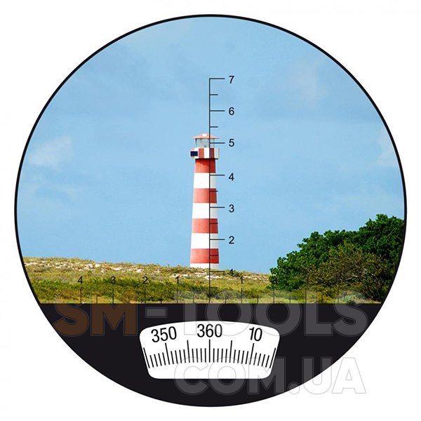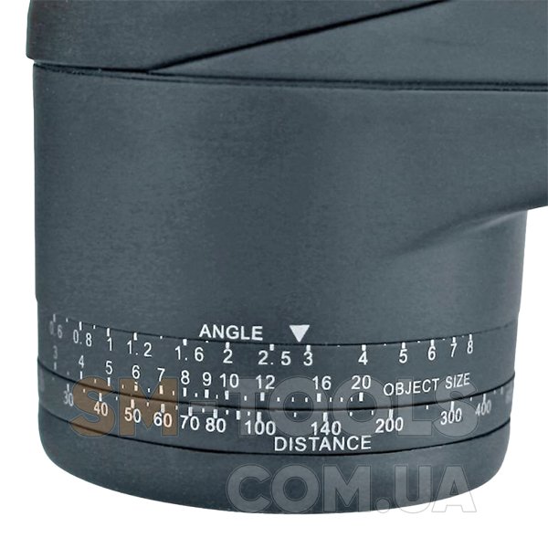Благодаря дальномерной сетке и шкале также возможно определить расстояние до наблюдаемого объекта, зная его размер. Наблюдая в окуляр интересующий объект, ориентируйтесь на количество делений на визирной сетке. Например, значению 3.9 по шкале соответствует 12-метровому зданию. Выставляя это значение на верхней шкале измерения расстояния Вы задаете систему отсчета. Нижняя шкала - реальный размер объекта (12 м). В этом случае расстояние составит 300 метров, что Вы и увидите на нижней шкале.
