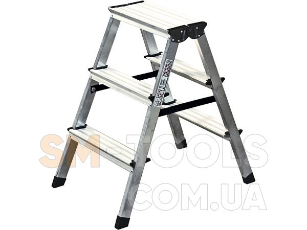 Двусторонняя напольная алюминиевая стремянка с двумя поясами безопасности.