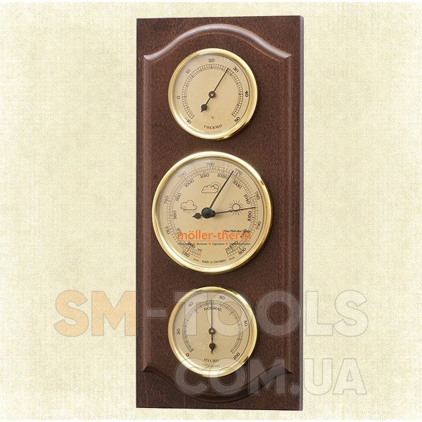Компанія Moller-Therm, GmbH (Німеччина) відмінно зарекомендувала себе в сфері розробки та виготовлення різних вимірювальних приладів. Барометри інтер'єрні є однією з популярних груп товарів, які представлені цим виробником на ринку Європи і країн СНД. Барометр інтер'єрний є не тільки високоточним приладом для вимірювання атмосферного тиску, а й стане вишуканою прикрасою будь-якого інтер'єру. Всі деталі та елементи приладів виготовляються і збираються в Німеччині. Точність і гарантована довговічність - ось основний девіз компанії Moller-Therm. На підтвердження цього на свою продукцію виробник надає два роки гарантії. Все барометри адаптовані для нашого ринку і мають вимірювальну шкалу не тільки в hPa, але і в міліметрах ртутного стовпа. Деякі моделі крім барометра мають додатково гігрометр, термомент, годинник