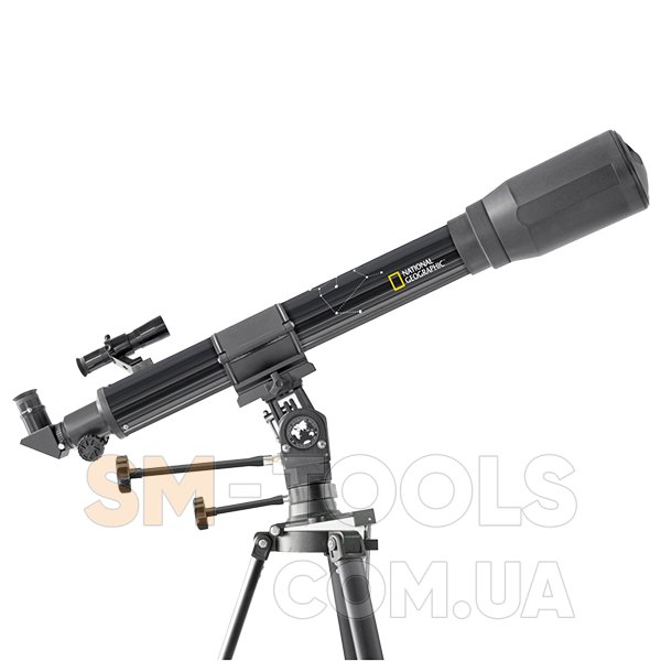 Телескоп National Geographic 70/900 NG – безусловно один из самых недорогих телескопов в своём классе. Этого удалось достичь благодаря новому, более дешёвому типу NG-монтировки, объединяющей в себе простоту азимутальной и преимущества экваториальной конструкции. Эта монтировка идеально сбалансирована и практически не допускает лишних вибраций телескопа. Вместе с тем оптика очень качественная и в сочетании с большой апертурой объектива способна удовлетворить многих требовательных пользователей.