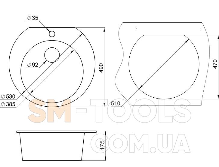Размеры мойки ШхВ (Ø): 53х49 см