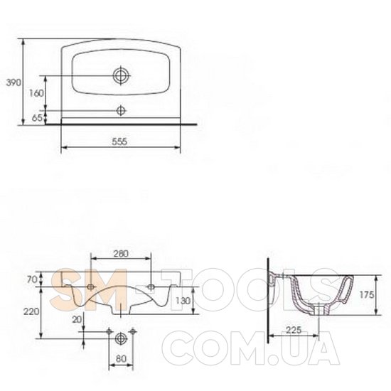 Габариты раковины (ВхШхГ): 17,5х55,5х39 см