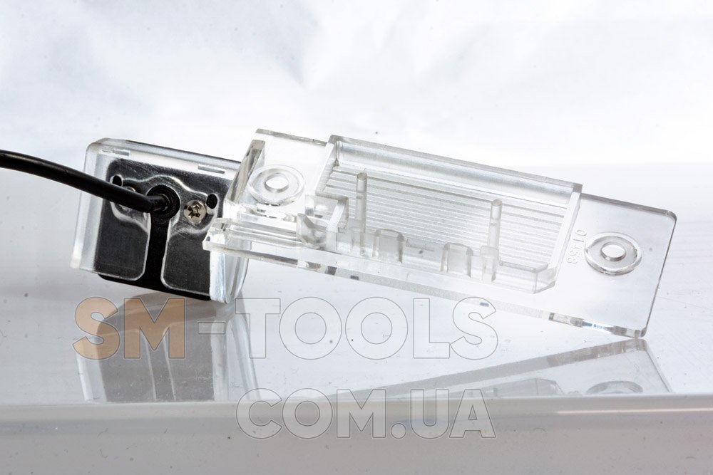 Штатная автомобильная видеокамера заднего вида Fighter CS-HCCD+FM-14 (VW/Skoda/Seat), предназначена для установки вместо штатного плафона фонаря подсветки номера автомобиля.