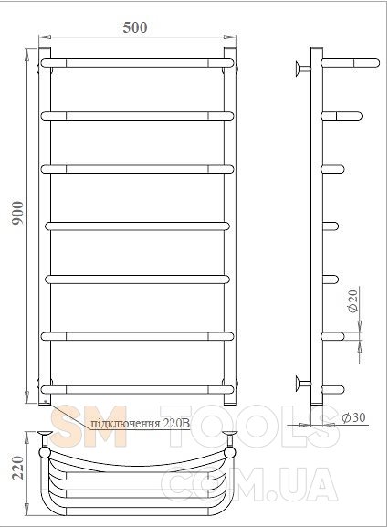 Предназначен для эксплуатации в ванных и душевых комнатах жилых и общественных зданий для сушения полотенец и обогрева