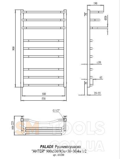 Рушникосушарка PALADii Антей 900х530 / 9 АН200