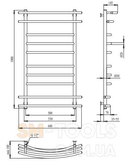 Предназначен для эксплуатации в ванных и душевых комнатах жилых и общественных зданий для сушения полотенец и обогрева