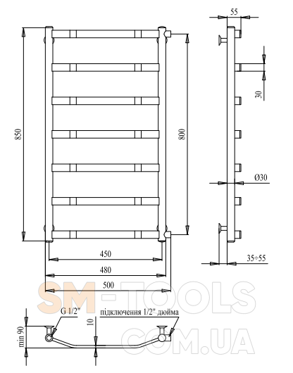 Рушникосушарка PALADii Галант 850х500 / 7 ПТ036