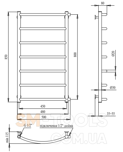 Рушникосушарка PALADii Стандарт 850х500 / 7 РБ244