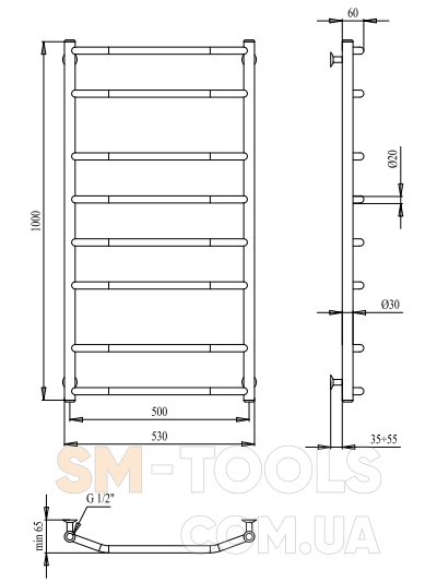Рушникосушарка PALADii Класік 1000х530 / 8 РШ126