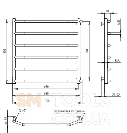 Рушникосушарка PALADii Класік 650х700 / 6 РШ101