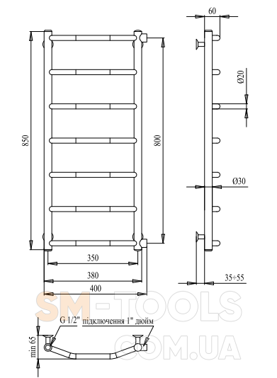 Рушникосушарка PALADii Класік 850х400 / 7 РШ116