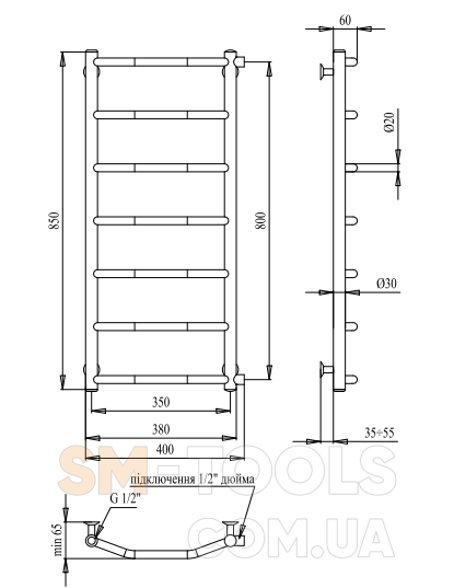 Рушникосушарка PALADii Класік 850х400 / 7 РШ087