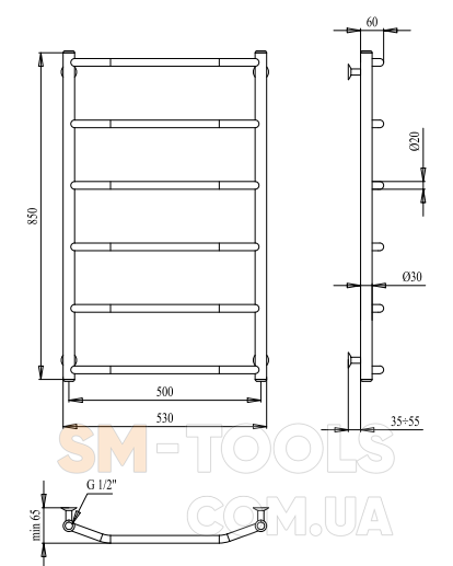 Рушникосушарка PALADii Класік 850х530 / 6 РШ151