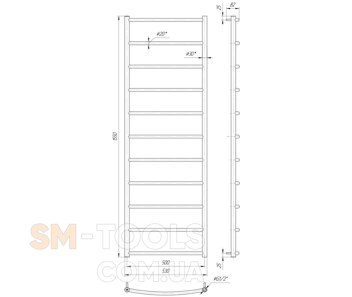 Рушникосушарка Mario Класік НР 1550х530 / 500 1.3.0105.01.P