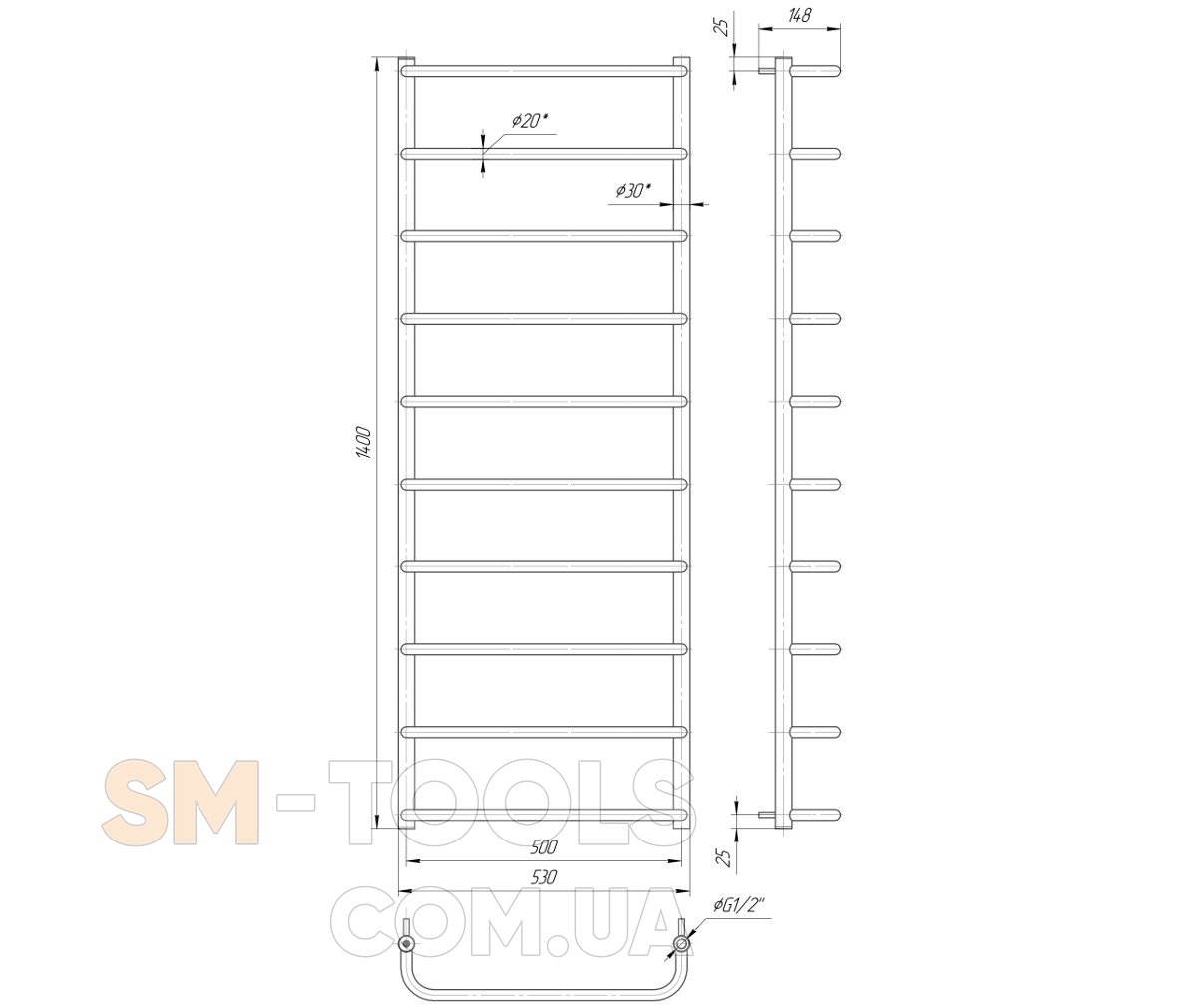 Рушникосушарка Mario Стандарт НР 1400х530 / 500 1.3.0204.01.P
