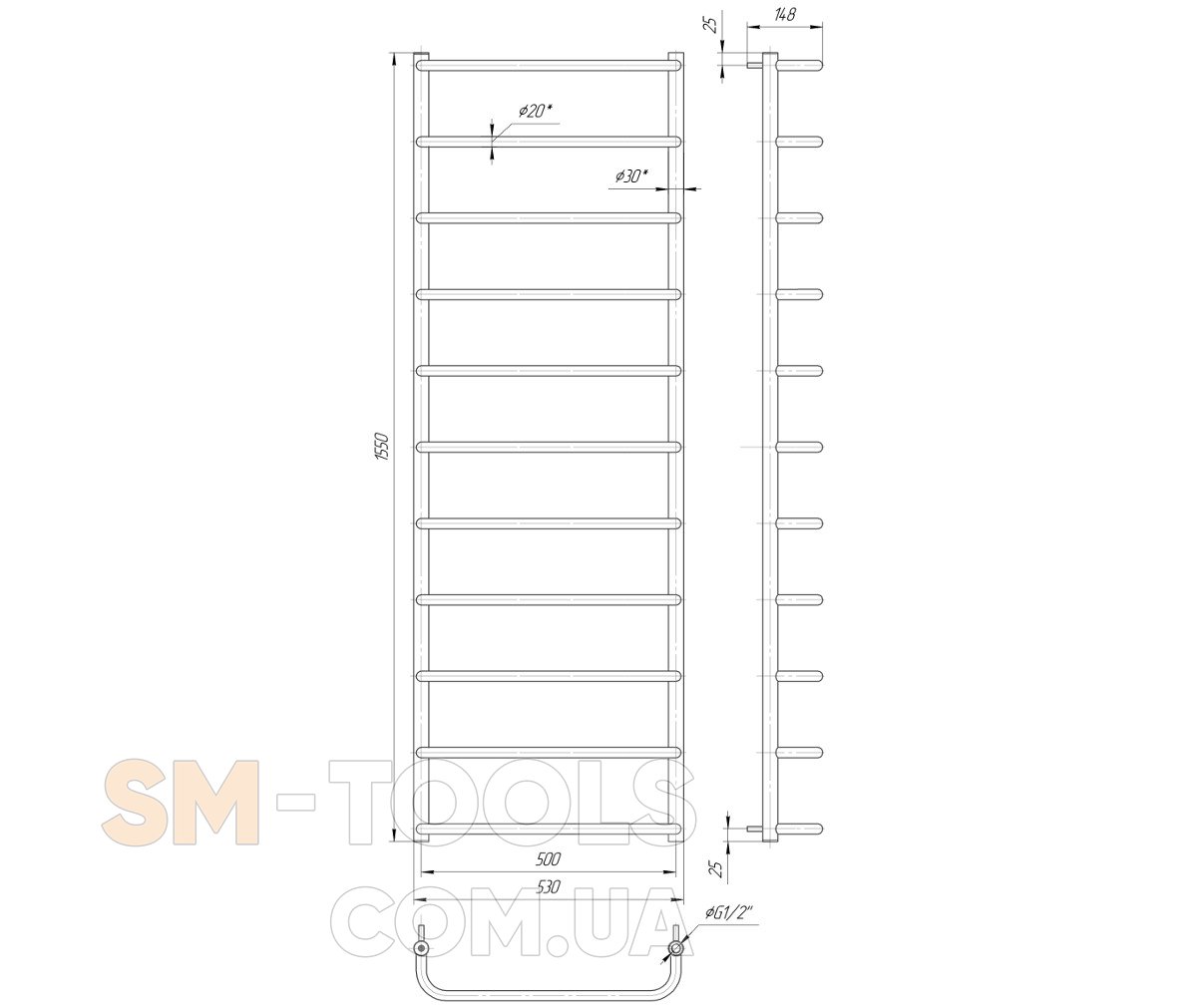 Рушникосушарка Mario Стандарт НР 1550х530 / 500 1.3.0205.01.P