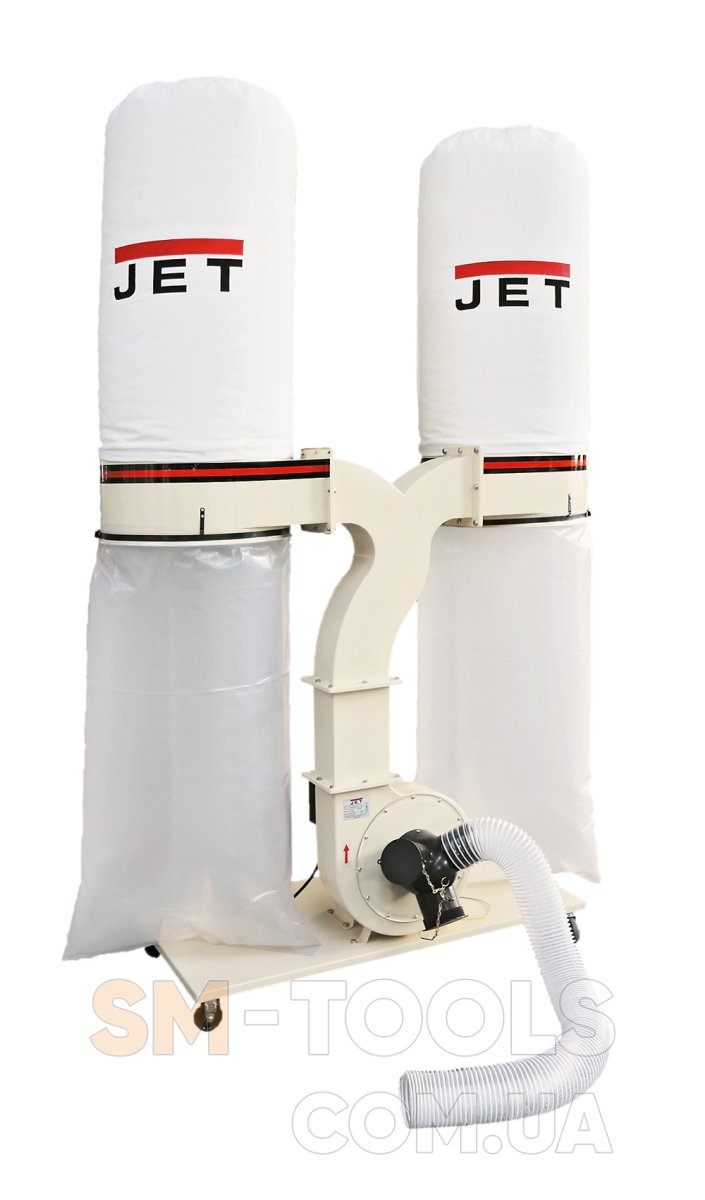 Jet DC-2300 – мощная вытяжная установка для эксплуатации с оборудованием, производящим большое количество древесных отходов (рейсмусовые, фуговальные, циркулярные, шлифовальные и другие станки). Модель предназначена для стационарной установки в мастерской и подключения до трех деревообрабатывающих станков. Установка комплектуется надёжным асинхронным двигателем, металлической крыльчаткой, способной пропускать сучки и щепки не разрушаясь, ёмкими пылесборниками и предназначена для продолжительной эксплуатации без частых перерывов на обслуживание и охлаждение.