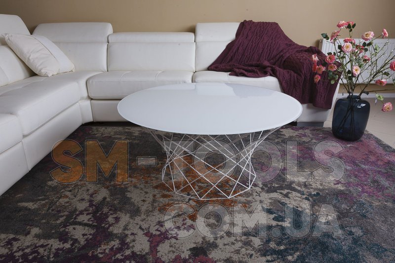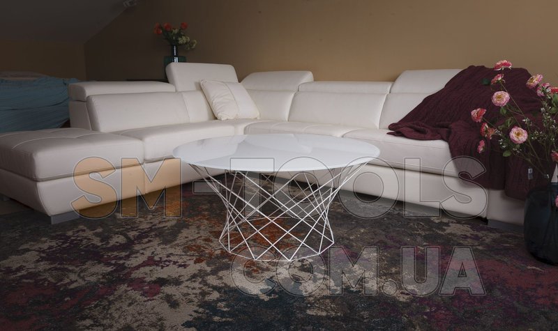 Столешница круглой формы изготовлена из закаленного стекла 8 мм и имеет глянцевую поверхность.