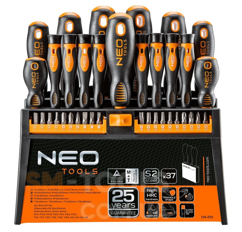 Набор отверток и сменных наконечников NEO содержит 37 предметов высокого качества.