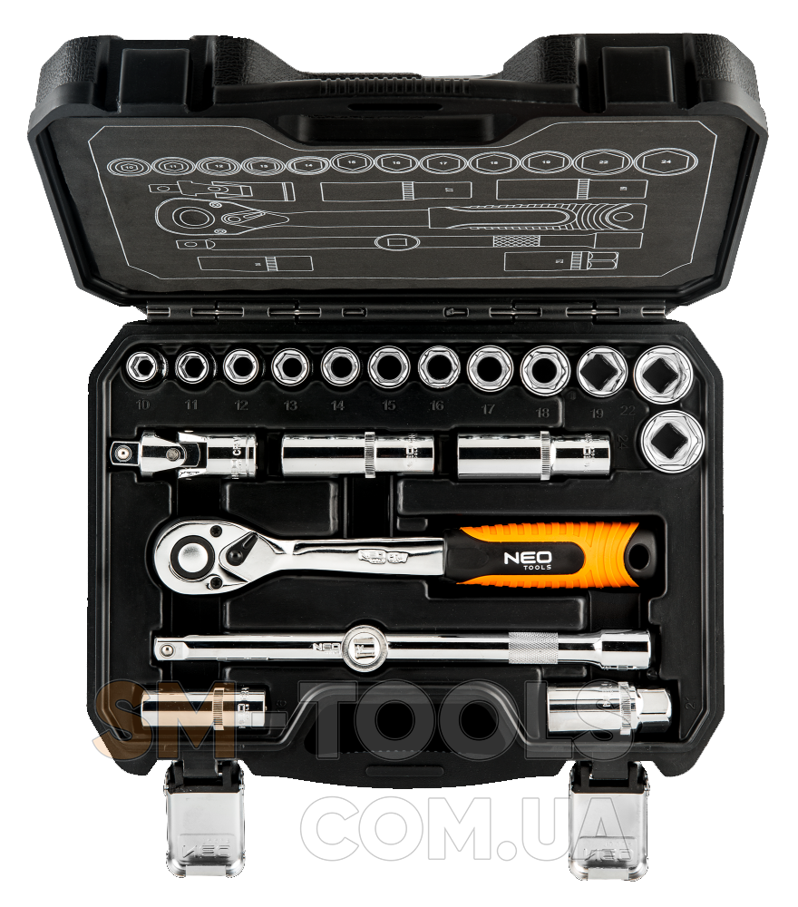 Бренд NEO оправдывает ожидания профессионалов.Набор торцевых ключей 1/2" NEO (арт. 08-661) состоит из 20 элементов, изготовленных из хромованадиевой стали высокого качества.