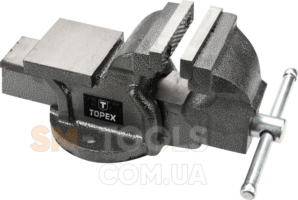 Тиски слесарные TOPEX с высокой силой зажима губок. Предназначены для закрепления предметов, подвергаемых обработке ручным или машинным способом.