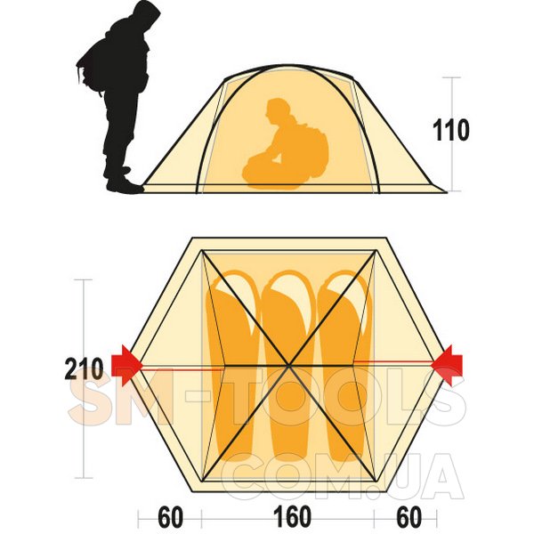 Внешняя палатка (ДхШхВ), мм: 2100 х 2800 х 1100