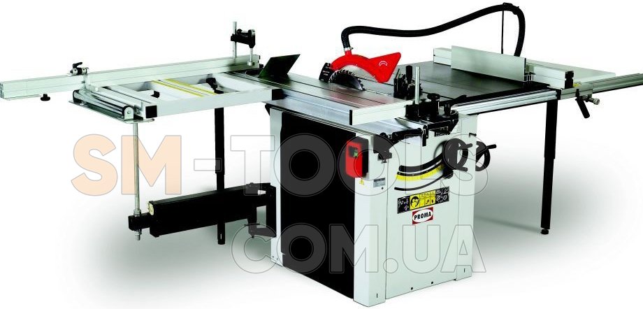 Форматно-розкроювальний верстат Proma PKS-315F використовується для поперечного та поздовжнього розпилювання листових матеріалів із деревини або пластику. Направляючі, якими переміщається каретка, виконані з хромованої сталі, це підвищує їх точність і зносостійкість. Кутовий упор дозволяє розпилювати матеріал під кутом 45 градусів без попередньої розмітки. Потужний трифазний двигун легко справляється з навантаженням, тому можна виконувати розпилювання пакетів, що не перевищують максимально допустиму товщину.