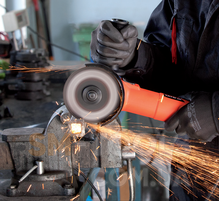 Компактная угловая шлифмашина YATO YT-82094 с двигателем мощностью 850 Вт. Привод с конической шестерней из высококачественной стали генерирует оборот 11000 об/мин.