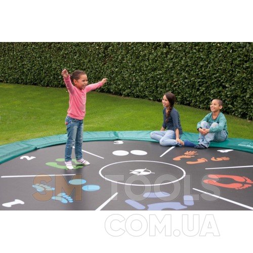 У наборі батут Berg Favorit Tattoo діаметром 430 см із захисною сіткою Safety Net Comfort, що забезпечує максимальну безпеку під час використання. Батут Tattoo - унікальний батут з ігровим покриттям. На покриття нанесено шість ділень з картинками, які показують, яким чином слід здійснювати стрибок.