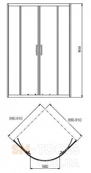 REKORD кабіна напівкругла 90*90 см, профіль сріблястий металік, скло прозоре