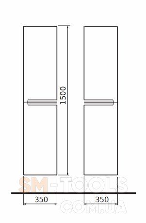 Пенал напольный, боковой, 350*350*1500 мм, ДСП, распашные двери, белый глянец
