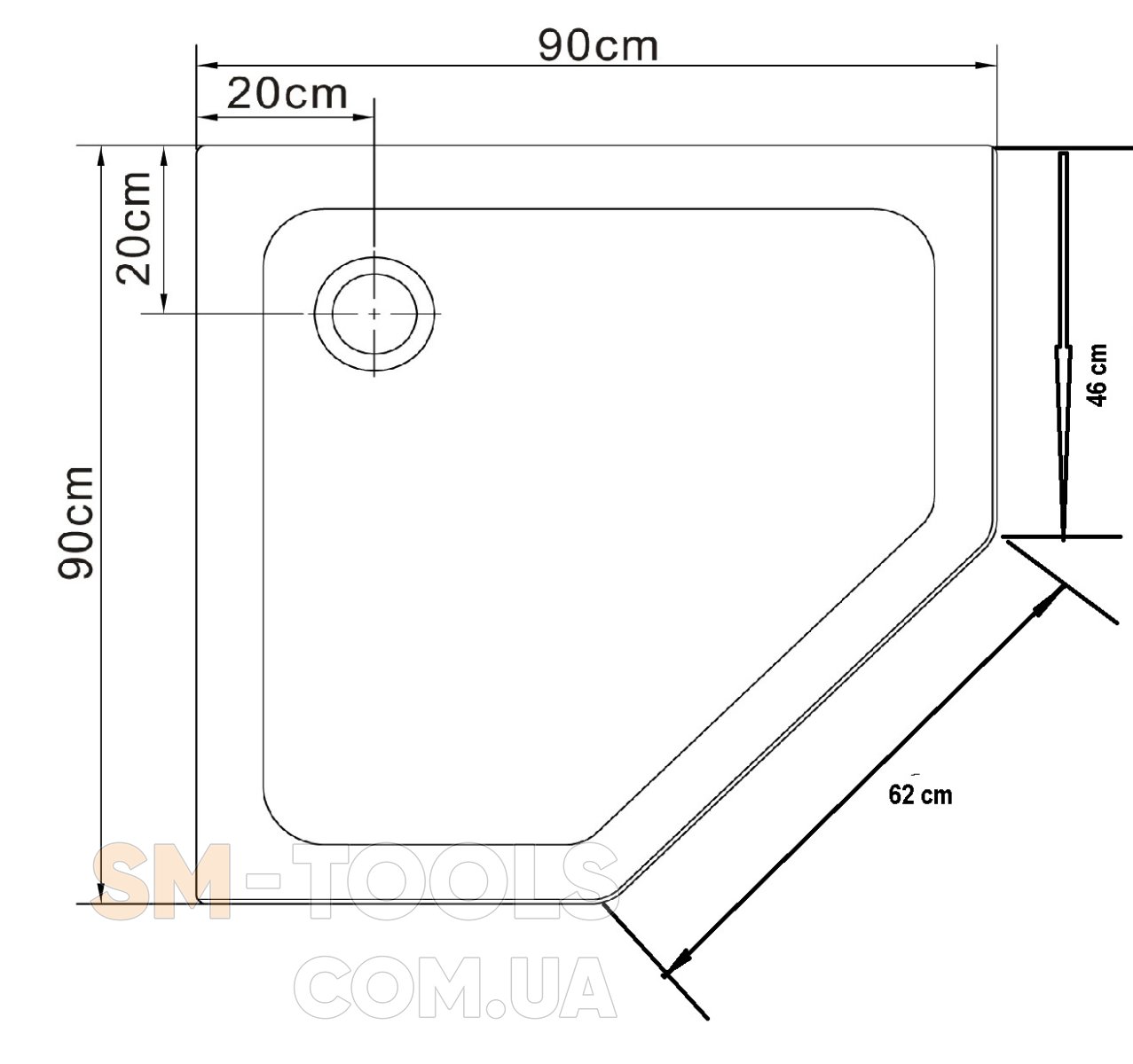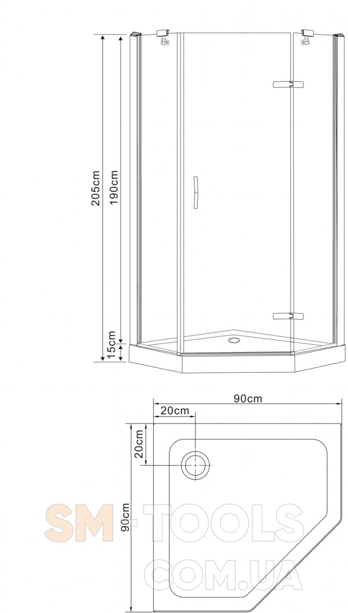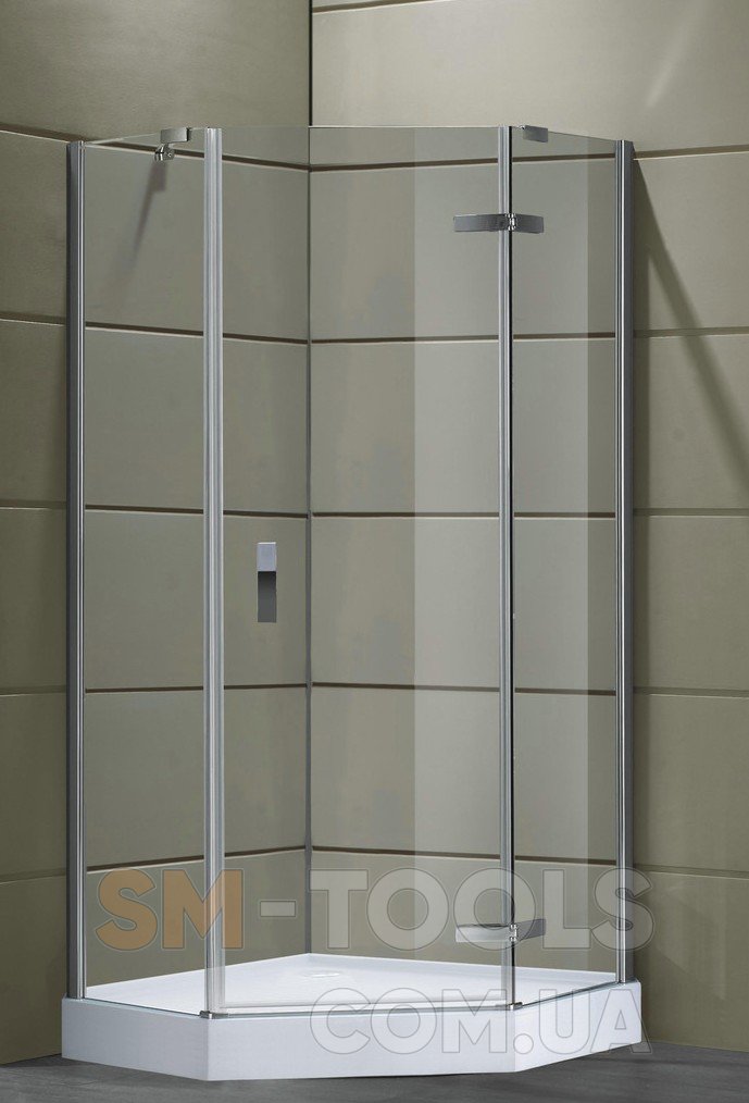 STEFANI душевая кабина пятиугольная 90*90*205 см, на мелком поддоне (15 см), распашная, стекло прозрачное