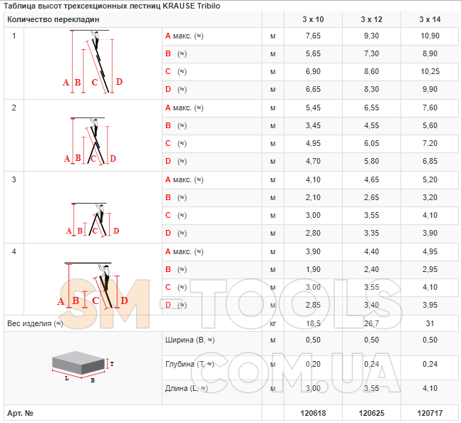 Очень рад покупкой в интернет магазине sm-tools,купил лестницу раскладную 3х секционной Krause Tribilo 3x10,работаю уже с ней 2 года. Пару слов скажу о ней ,конструктивно устойчивая,хорошо стоит на ножках, удобна при транспортировке - складывается и раскладывается в течении минуты. За такие деньги отличный вариант. Рекомендую всем своим друзьям. -