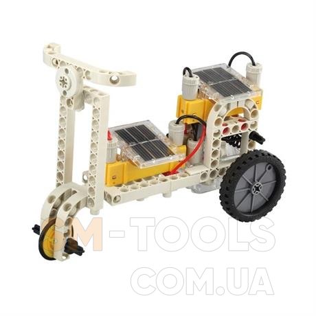 Днем под яркими и прямыми солнечными лучами все модели работают от энергии солнца, в помещении или на улице в пасмурную погоду вместо солнечной батареи можно установить батарейку или аккумулятор. В руководстве по сборке просто и доступно поясняется процесс превращения солнечной энергии сначала в электрическую, а затем в механическую энергию, описаны особенности шестеренок и понятие передаточного отношения.