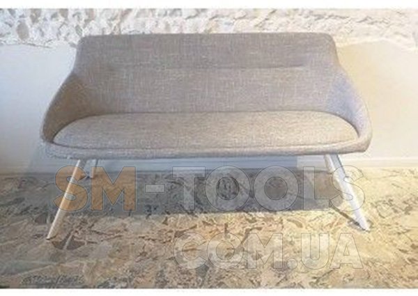 Обивкой послужила высококачественная плотная ткань рогожка, ножки выполнены из металла белого цвета.