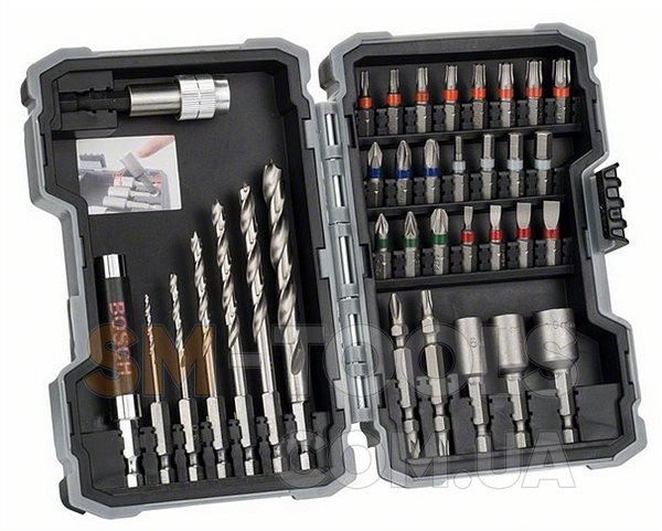 Удобный переносной набор Bosch имеет 35 разнотипных элемента. Набор из 35 сверл и бит с быстросменным универсальным держателем, а также с магнитным универсальным держателем.